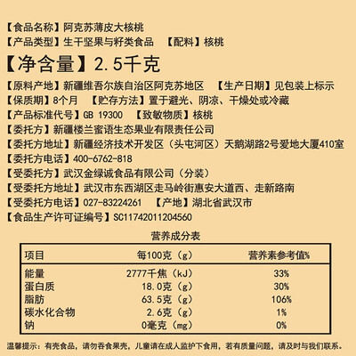 二、楼兰蜜语阿克苏薄皮大核桃产品参数: