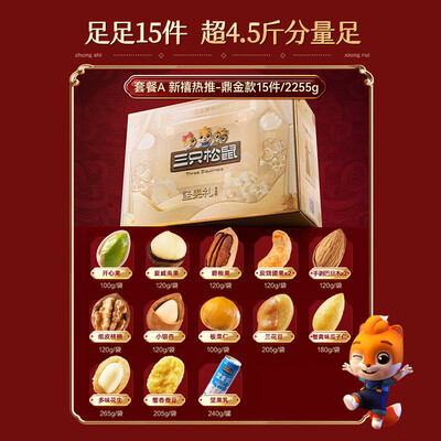 三只松鼠坚果礼盒15袋2255g送礼物零食大礼包开心果夏威夷果碧根果 混发到手价格169.0元。
