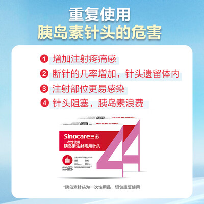 三诺诺凡胰岛素注射笔针头之前买了一小盒,感觉还不错,这次果断买了两大盒外观干净漂亮,做工很不错,没发现什么瑕疵,个人感觉大小也挺合适,和医院里买的一样,京东购买十分方便,质量非常好,很满意的一次购物。真的超级喜欢,质量非常好,与卖家描述的一致!宝贝收到,物流很快,描述相符,比较满意,好评,推荐老人喜欢用这款枕头已经用了两年多了,这次趁三八节的活动,买了两盒给家人用,比其他品牌的针头有过之而无不及,非常的适配,而且也没有痛感价格比,比其他的品牌要便宜些。