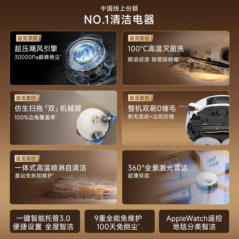 第二次买追觅了,从s30用到s50,体验一直不错,有任何问题售后都很耐心解决,这次买了自动上下水版本很方便,用起来很省心 清洁速度比很久之前之前的追觅s10较了非常多多,之前s10一扫一拖几乎要一天、现在只要半天就完成了,效率几乎提升了一杯有多 服务态度真好,发货很快。商品质量也相当不错。价格很优惠,服务也很好,东西不错,太喜欢了,谢谢!扫地机器人有上下水不用换水很方便