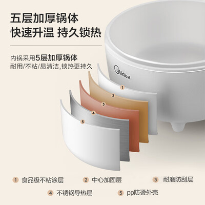 美的(Midea)多功能锅煮了几次,锅底开始脱漆了,开始还以为是陶瓷不占锅物流很快,物美价廉哈!方便的很!方便面的专用锅外形外观:好看斯斯文文操作难易:简简单单火力大小:还没使用过清洗便捷度:还没使用,不过应该可以就是性价比不高,挺贵的丶物流很快。前晚上下单。第二天一早就送到了。外包装盒完整。内有说明书,标签。已回购的。618活动优惠便宜好多哈!放心上京东电商平台购物吧!京东物流有保障!