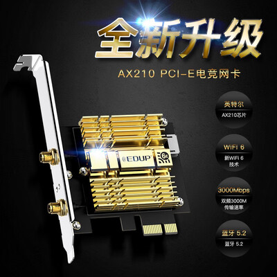 翼联(EDUP)AX210无线网卡 WiFi6双频千兆PCI-E内置无线网卡3000M+蓝牙5.2二合一无线网络wifi接收器到手价格189.0元。
