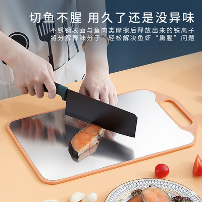 沃德百惠(WORTHBUY)砧板菜板一面是不锈钢的,可以用来切肉,另一面就可以用来切瓜果。菜板用材厚实,质量好,没异味,用途广,易清洗,再也不用担心菜板时间久发霉了??这个菜板用起来很方便赞?而且很容易打理!我很喜欢用!不占地方按板包装精致美观大气,两面都可以使用!目前用着非常不错,真实评价,希望可以帮到集美们!很不错,用起来方便,再也不用担心会掉木屑了干净切菜板很给力