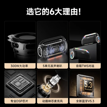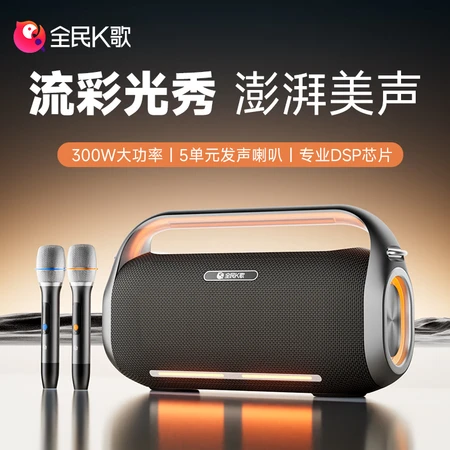 比较了很多型号,最后选了这款。颜值很OK,灯光蛮好看的,当个蓝牙音响挺好的。配了2个迷你的话筒,蛮可爱的,给孩子当玩具挺好的。 真不错,音效很好,和普通的ktv 有的一比。音响很有质感,话筒轻了一点,对比了几家,这个是真的好。声音好大,这个价格太值了!强烈推荐。 音质非常好,安装简单,听歌不错,话筒音质非常好,K歌非常方便,很满意的一次购物,收到宝贝真心不错,性价比很高,经济实惠!