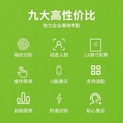 ZKTECO考勤机第二次购买了,员工指纹不明显,打卡经常打不上,刷脸一下子就好了识别速度:很快屏幕效果:很清晰操作难易:比较简单产品外观:比较轻巧,方便携带不错非常好用呢,可以购买。经济实惠发货速度快发货速度很快,质量做工也很不错!还没有使用,好评先!