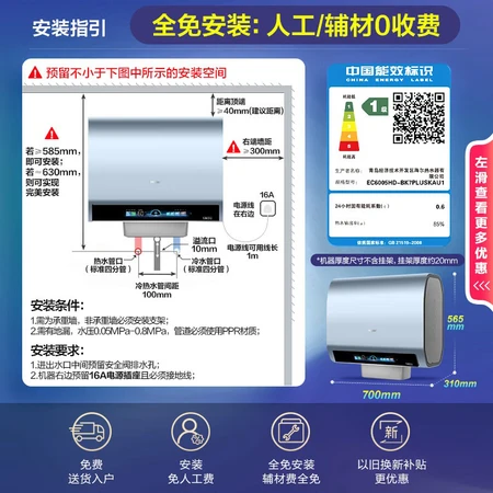 海尔麦浪电热水器真的超出预期!双胆扁桶设计节省空间,60升容量足够家用。升级的富锶小蓝瓶和免镁棒技术让水质更健康,洗澡更安心3300W 速热加热超快,一级能效节能省电,配合国家补贴性价比超高。使用体验很棒,好评!师傅准时到达,提前电话联系,搬运非常小心,主动帮忙检查外包装完好,服务态度亲切专业。安装师傅很专业,准时上门,操作熟练规范。详细讲解使用方法,还主动帮忙清理现场垃圾,服务细心周到,给师傅点赞!