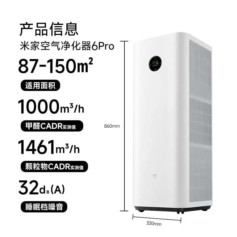 小米空气净化器6Pro太值得入手!双风机设计净化超高效,甲醛和颗粒物CADR值拉满,新装修异味、粉尘毛发快速清零。睡眠模式几乎静音,万向轮移动方便,连APP能远程操控,实时显示空气质量。权威认证加持,大户型也够用,守护全家呼吸健康超省心!这个最新款空气净化器颜值很高,在家也不占地方,打开后家里的空气明显清新了很多,关着门在卧室睡觉也安心多了,睡眠模式非常安静,配合米家使用也很简单