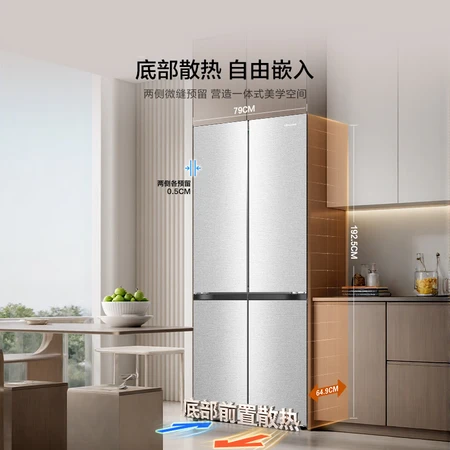 完美嵌入,颜值超高,这款是线下就非常心动的,刚好线上政府补贴,非常划算!新机开机启动了一会,制冷效果完美!保鲜效果也很好,去味很快哦! 严丝合缝非常合适,推荐这个,制冷效果等入住来追评外形外观:非常好看制冷效果:估计不戳保鲜效果:应该可以的容量大小:非常大足够用了 冰箱很好看,手感是磨砂肤感,很棒!