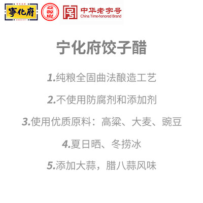 宁化府饺子醋 500ml物美廉价,配料表还是比较干净。吃起来放心。做活动购买价格比较便宜,口感非常好,非常满意,夏天必备良品。包装完好无破损,山西陈醋老牌子,值得信赖。本地人常买!品质挺好的,实惠的价格,对比好几个产品的品质才购入。相信京东的能力和产品。商家发货速度也快,拿到东西包装也挺好的。推荐大家购买,~~?