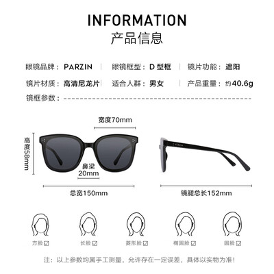 帕森PZSUN91620戴上眼镜,一下变靓,旅游出去又可洋盘了。很好的墨镜,戴上不是特别黑,又可以遮光,不会觉得晒了,性价比也很好,非常推荐的一款太阳镜??,包装也是件大方便,很适合携带这个颜色很喜欢,摸起来质感不错,百搭~包装也很大气,用来送人的话也是不错的选择原来买的一个太阳镜丢了!买的图片款,挺好,超酷!开车旅游戴着都很好,不怕大太阳了!