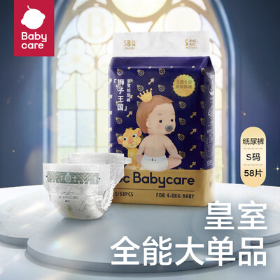 babycare皇室狮子王国弱酸纸尿裤S58片(4-8kg)新生儿小号尿不湿弱酸亲肤到手价格144.0元。