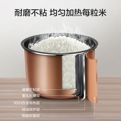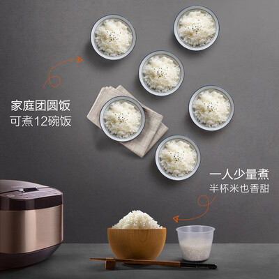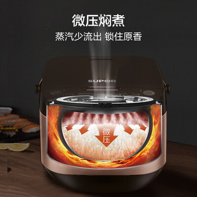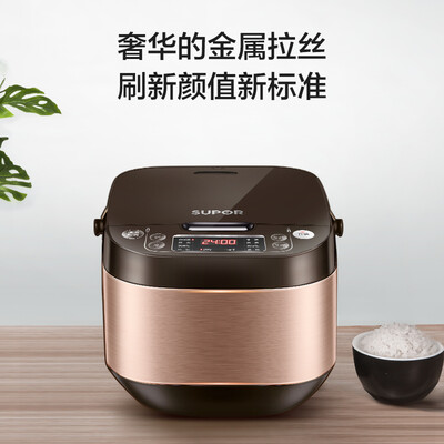 苏泊尔(SUPOR)电饭煲与描述相符,外观漂亮,使用效果好,烧出的饭,非常好吃!功能多,煮饭方便,特别好用,龙龙爱吃它煮的饭。龙龙用了也说棒家里的锅用了很多年,这次想换一个新的电饭煲,在网上查了很久很多遍,然后终于选上了这款电饭煲,这款的主要原因是因为这款锅的锅盖可以自由拆下。这款锅蒸出来的米饭还是很鲜美的外观也美,也很大方,适合一家三口使用。双十一买的好像不到二百。样子好看,功能齐全,满足日常生活需要。非常轻便,上盖可拆卸清洗。做饭大概半小时时间。做粥一般都是预约到早上。按说明使用,绝不会噗锅。很满意。