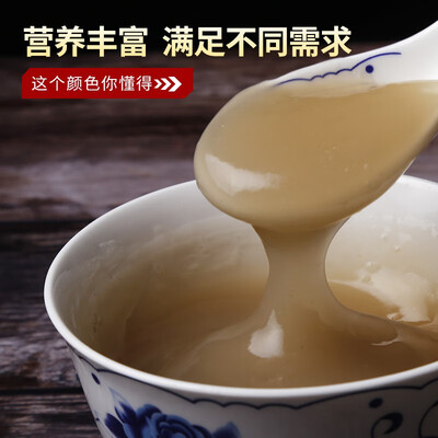 葛峰(gefeg)001上星期试买了一袋,收到后是彩色袋子,看包装不错,很容易冲调成功,又下单4袋,这次是透明袋子,都是饶情牌,不知道有没有区别。六月八期间购买,价格还算挺和善的,已经第二次购买这个产品了,这产品质量还可以,喝起来味道很正常,挺喜欢这款产品,这里的特产产品真不错。很实惠的,超爱!物流很快,一看就很正宗,点赞!粉质细腻,没有杂质,口感好,给老人调理用的,还会回购的