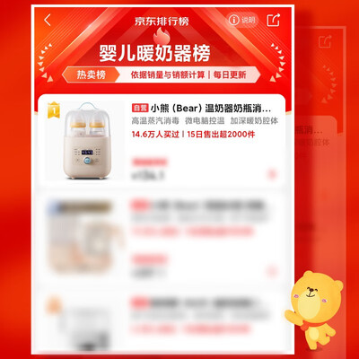小熊(Bear)暖奶消毒产品功能:应该是三合一啦,温奶消毒,热水都可以外形外观:外观是我喜欢的简单还高级实在不喜欢粉色容量大小:容量足够两个奶瓶,而且热水特别快,噪音小操作难易:傻瓜式操作,去医院不用大包小裹啦真的很方便还没有使用,到货快,看中功能比较齐全,可以一机多用,希望好用。产品功能:还不错,反正消毒烘干和恒温都可以用外形外观:挺好看的,简约设计款容量大小:刚刚好够用,不会特别大其他功能:恒温壶真的挺好用的,对于冲奶来说是福音。希望能好用。物流速度很快,包装完整,做活动买的,价格也还可以,用了几次,感觉很好,时间也可以根据自己的需要调整,不过1个小时的时间还是有点长,还有声音略微有点大,希望可以改进一下