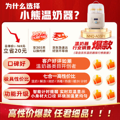 小熊(Bear)温奶器奶瓶消毒器二合一 暖奶器 母乳解冻定时加热辅食 NNQ-A03F1到手价格149.0元。