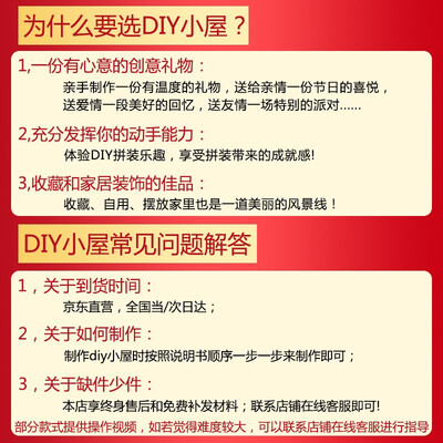 我の屋建筑/DIY小屋宝贝发货速度也很快,外包装完好无损。这款立体拼图玩具,外形漂亮大方时尚,制作精致质量很好,孩子很喜欢,很便宜,物美价廉,值得购买。真的很难拼,我已经拼了两天了,还没拼完,不过客服很好,说明书有很多看不懂的地方,问客服他们都会耐心讲解,而且b站上面还有讲解视频到手后就迫不及待的打开了,大小刚刚好,做工也很精致,就是安装起来有点费时间啊,下午只弄好了这些,好期待成品啊,等有期间继续弄这个真的太?了,?包装很精美,宝贝做工比较精细,商家特别好?,有问题都及时处理?,确实是一次相当满意的网购,还会再来的?