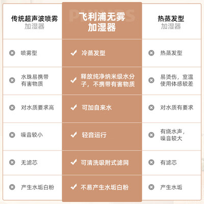 飞利浦(PHILIPS)加湿器以前有一个飞利浦的,这个比老款容量大,使用时间长,还可以预设湿度,达到设定值就停,整个使用时间更长。推荐?宝贝收到了,颜色很好看,质感也很好,样子简单!?是我想要的!!下次还会再来!真心喜欢,颜色、款式都非常棒!尺寸刚刚好,质量也非常好,店家的包装太用心了,值得推荐!外形设计:收到啦,很不错,非常喜欢,值得购买,(*^__^*)嘻嘻......水箱容量:真的很好用,对商品非常满意,属于无限回购款,推荐!试用了几天,无雾,不过开一宿睡眠模式室内达不到预设的50。不过开着比不开好一点外观漂亮