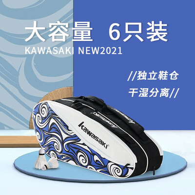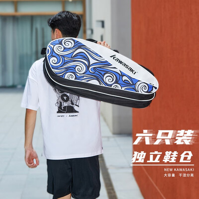 川崎(KAWASAKI)羽毛球拍包双肩背包网球拍包6支装男女通用独立鞋袋大容量 8682D 黑蓝色到手价格179.0元。