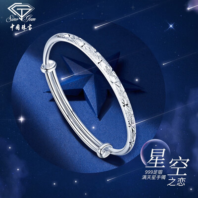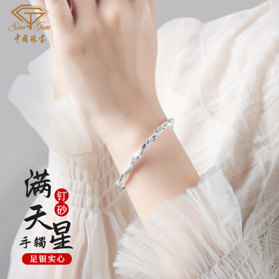 中国珠宝 三八女神节礼物 银手镯女足银999满天星时尚银首饰情侣手环送女友老婆生日礼物30g到手价格399.0元。