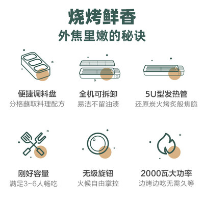 小熊(Bear)电烧烤炉在家实现烤肉自由,还能吃火锅,特别方便实用。性价比很高,很实惠,使用起来感觉很好,非常完美.^?^.刚收到,看着还不错,期待使用效果,用后再追评吧?水槽有点儿浅,时不时地就得加水。其他都挺好。