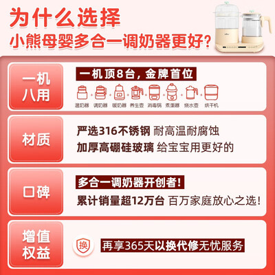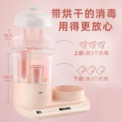 小熊(Bear)暖奶消毒温奶**小适中,不占地方。能放两个奶瓶,且单放奶瓶也不会倾斜或者倒。使用很方便,没有噪音,温奶速度也很快。整体颜值也可以,比较可爱小巧。产品功能:功能齐全,满足了带娃的日常需求。外形外观:非常好看,高级的。容量大小:很能放,能6个奶瓶真的很nice。声音各方面都不错的。很好用,省事。到货外观很精美,容量大,适合消毒奶瓶碗和各种玩具。包装的严实,恒温水壶,可以给奶瓶消毒,温度可调节。