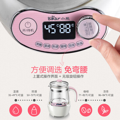 已经入手点评小熊TNQ-A08C1是否值得买?评测一周真相分享!说实在的这个小熊(Bear)恒温调奶器0.8L 温奶器恒温水壶暖奶热奶迷你玻璃水壶TNQ-A08C1确实是不错的哈再也不用担心温度的问题了,27-45设置完自己就可以加热保温,大小也合适,操作简单,值得购买 消毒和热水一体机,用起来更方便,也更省空间。消毒桶里可以装大概2,3个奶瓶,桶子挺高的,消毒桶下面有个小风扇,可以加速烘干,水壶可以恒温烧 小熊(Bear)暖奶消毒产品功能:非常的多外形外观:美观简单容量大小:容量大拍下,快递很快,第二天就到了,真的救急,目前使用感还不错,恒温45℃给宝宝泡奶,自己喝水很方便!每天可以喝上好几壶,就是壶有点小了。