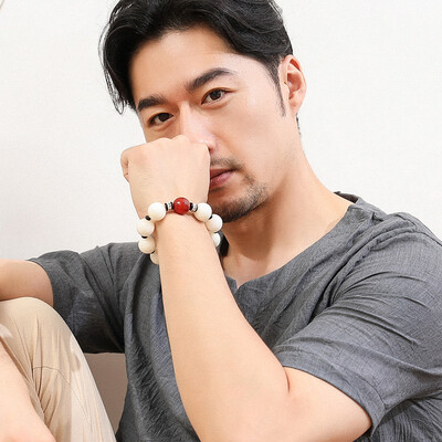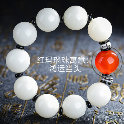 妍韵珠宝 白玉菩提根手串 红玛瑙圆珠文玩木手串把件手持盘玩单圈佛珠念珠菩提子手链男女士款 18mm到手价格129.0元。