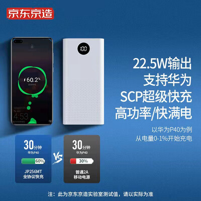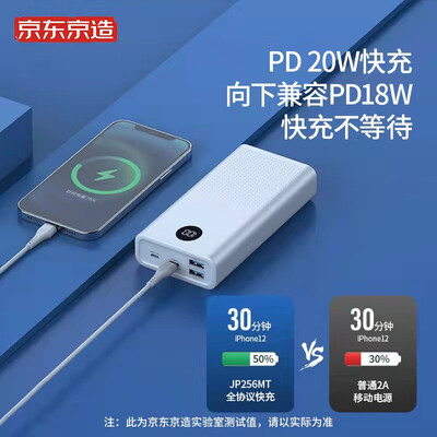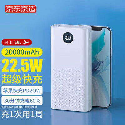 京东京造 充电宝20000毫安时 22.5W超级快充20W苹果PD兼容18W 大容量移动电源适用于苹果安卓设备到手价格109.0元。