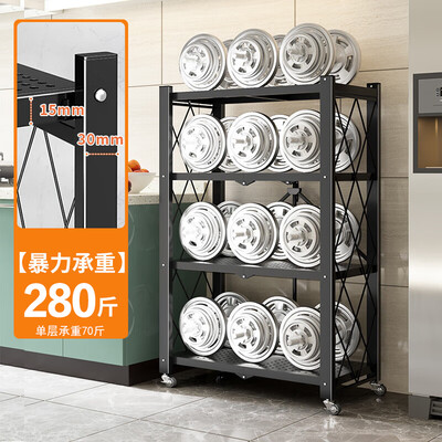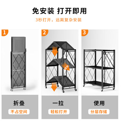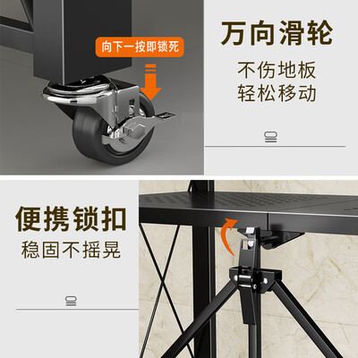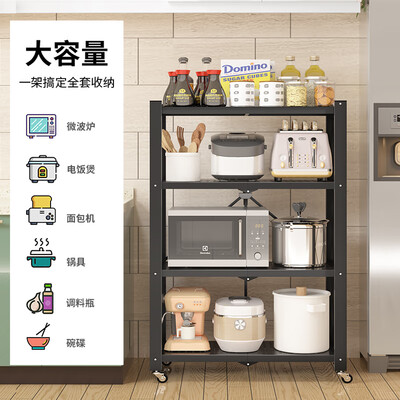 比新 BIX 厨房置物架免安装折叠收纳架可移动微波炉储物架黑色四层到手价格289.0元。