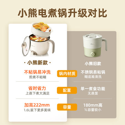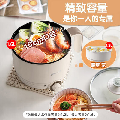 小熊(Bear)电煮锅 多用途多功能电热锅 学生宿舍泡面火锅小电锅 蒸煮一体蒸屉电蒸锅 DRG-E12L3到手价格69.9元。