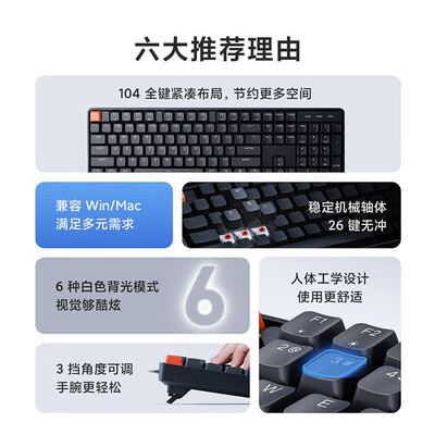 小米有线机械键盘红轴 104全键紧凑布局设计 兼容WidowsmacOS双系统 26键无冲 游戏竞技 键盘到手价格149.0元。