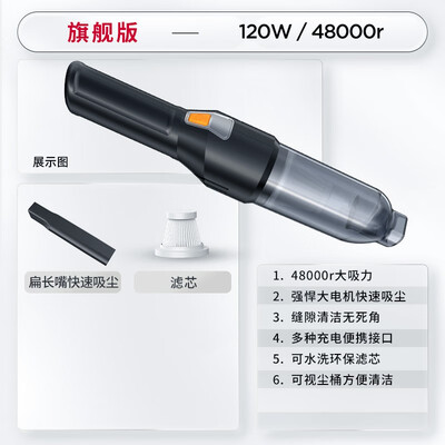 志高(CHIGO)无线车载吸尘器家用车用大吸力迷你随手吸锂电汽车桌面手持除尘机 120W标准款+滤芯1+扁嘴到手价格79.0元。