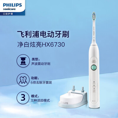 飞利浦(PHILIPS)电动牙刷成人学生 情侣款 礼物 送礼 可充电式 3种洁齿模式 6倍清除牙菌斑 白色HX6730【镇店款】到手价格299.0元。
