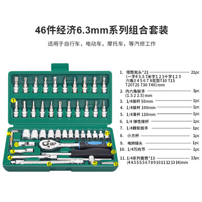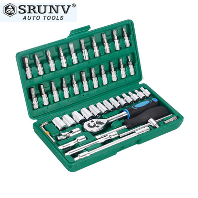 鑫瑞 SRUNV 汽修套筒扳手套装快速棘轮修车工具多功能工具套装46件小盒 A1-X04609到手价格39.9元。