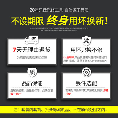 鑫瑞A1-X04609真心不错的一套工具,这么实惠的价格,居然还有棘轮扳手,批头也很齐全,我买来是拆洗衣机的,里面的套筒强度也很高,推荐推荐,还是很喜欢产品真的超级棒,颜值高、质量棒,下次还会买的,愿越做越好,非常好的购物体验一直在京东商城购物,商品收到了,质量很好的,支持京东。收到货品,打开看了一下,做工不错。尺寸齐全,一般家用是很够的。试了一下质量还不错,尺寸对于我自己家庭使用刚刚好,而且这个价格也不贵。
