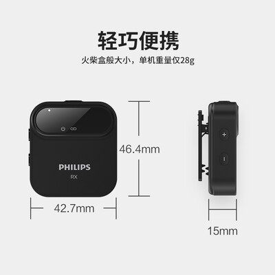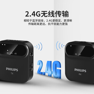 飞利浦无线领夹麦克风小蜜蜂收音麦克风直播设备收音器Vlog拍视频采访话筒手机相机IOS安卓通用DLM3538C到手价格399.0元。