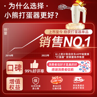 小熊(Bear)打蛋器非常好用的一款产品,经济实惠的价格便宜很多发货极速,质量非常好,非常满意的一次网购,推荐购买哦个人觉得性格比很高,好用,家里很多电器都是小熊的京东自营的东西一如既往的好,质量一如既往的好,物流速度一如既往的快,非常满意的一次购物,以后有需要还会一如既往的来!!!