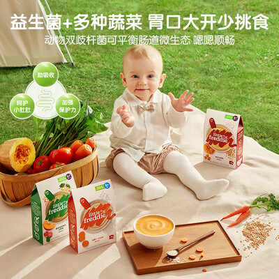 小皮(Little Freddie)番茄菠菜南瓜谷物粉益生菌高铁米粉宝宝辅食婴儿米糊160g1盒到手价格73.8元。