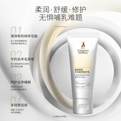 袋鼠妈妈乳头膏羊脂膏孕妇护肤乳头霜哺乳皲裂滋润羊毛脂膏30g装到手价格68.0元。