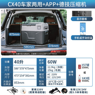 冰虎CX40 ACDC确实能够结冰,冷冻效果非常棒!压缩机声音可以接受,非常省电!放在墙角刚刚好,作为备用小冰柜,不用了又方便收起来,很棒外观好,大小合适,试了一下制冷很快,有了车载冰箱外出不带食物不用发愁了,有拉杠和轮子,搬动不费力,非常实用,推荐购买!这个太完美了,出去露营??太实用了、可以两用。外形外观:外观设计风格上档次使用场景:可以在屋里正常使用、也可以在户外用。便携性:方便携带可提啦。