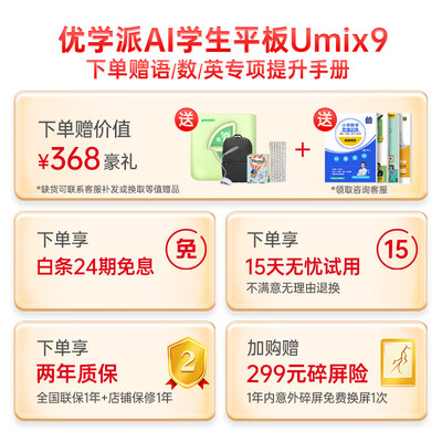 优学派AI护眼学习机Umix9 学生平板电脑6G+128G 11英寸 绿色安全家教机 英语点读机早教机 小学初中高中到手价格2798.0元。