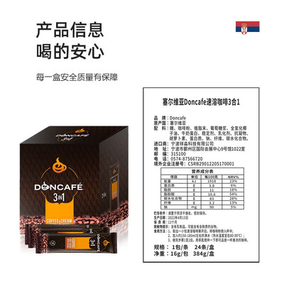 DONCAFE 【塞尔维亚国家馆】塞尔维亚原装进口速溶咖啡1盒24袋5种口味 3合1速溶咖啡到手价格49.9元。