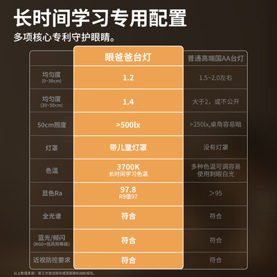 眼爸爸YB-Read6很好用的一款台灯,做工特别好的一款。很合适的一次购物,推荐购买正品,质量我,包装很好物廉价美物有所值满意入座自动开灯,可以有效防止孩子自己写作业忘记开灯。范围大,整个桌子都很亮,光线也很柔和,自动感应开灯非常赞,灯罩很贴心,不直射孩子眼睛,强烈推荐学习任务重的小学生使用。