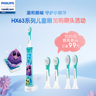 飞利浦(PHILIPS)电动牙刷给娃买的牙刷,颜值很漂亮,质量很好,我们全家人都用的飞利浦电动牙刷。有趣的互动式刷牙,还有app可以下载安装。一边刷牙一边享受互动乐趣,改善刷牙效果!儿童声波震动牙刷,让孩子从此爱上刷牙,消灭口腔细菌!第三次买了之前买过送人因为真的好用啊!这次赶上618买的活动超级给力了之前买下来都要330多这次270左右哎!还额外赠送2个刷头简直不要太划算之前买的送的是牙刷盒性价比没有这次的刷头高第二次购买飞利浦的儿童电动牙刷了,大牌值得信赖