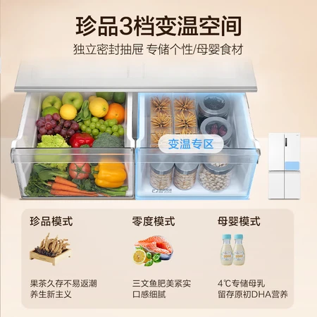大品牌刚买的,冰箱新的,质保10年服务好!空间很大,内存很大,白色的看着感觉不错,外观很大,物流很快,希望质量好,希望保鲜效果好! “家里人口多,特意选了这款大容量冰箱,真的太实用了!分区很合理,囤一周的食材完全没问题,连整只烤鸭都能轻松放下。一级能效也很省电,运行起来很安静,完全没有噪音困扰,性价比超高!”