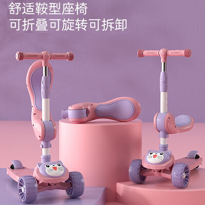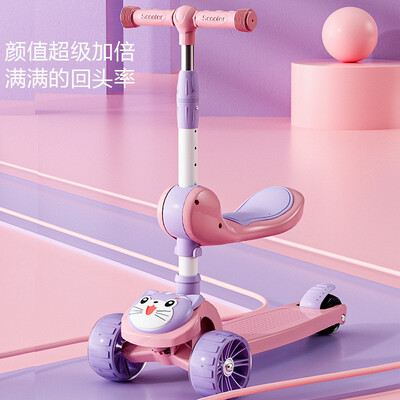 COOKSS 滑板车儿童玩具2-3-6-12岁可坐宝宝三轮滑滑车小孩童车踏板车三合一男孩女孩幼儿周岁 樱花粉【悍马闪光轮+音乐灯光+可折叠】到手价格68.9元。