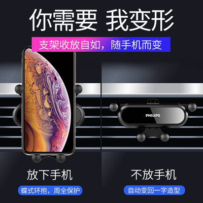 飞利浦(PHILIPS)车载手机支架出风口空调口重力感应汽车支架导航DLK3416N 黑色到手价格41.0元。