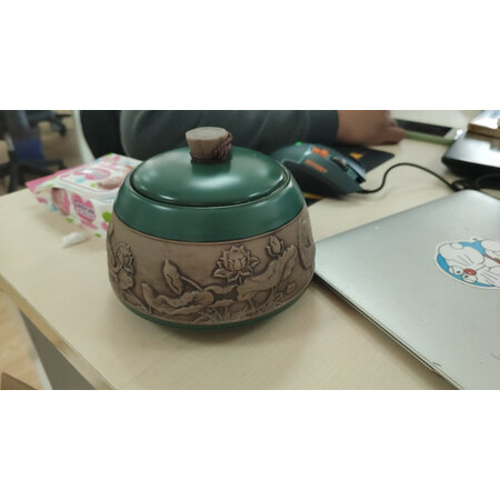 图案纹路两侧太不清晰,工艺挺一般。罐口不够圆,有瑕疵,感觉你家卖的这个罐有点贵了