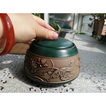 言艺沐樱茶叶罐绿做工精细 古朴大气 容量也不错200G轻松容纳。