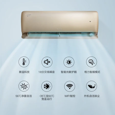 质量过硬,带WIFI功能,可以直接在手机上控制,非常方便,并且安装师傅非常专业,制冷快,又可以避开对人直吹,室外声小,不错,推荐购买 外形好看,很舒适,不会一下子就冷,有防直吹功能,静音效果好,很好很喜欢格力。发货速度很快,安装师傅很耐心的,一下子就给装好了。安装好师傅试用了一下,大概感受了一把,挺凉快的。